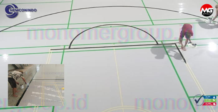 Epoxy memudahkan pembuatan garis lapangan yang jelas dengan warna kontras.