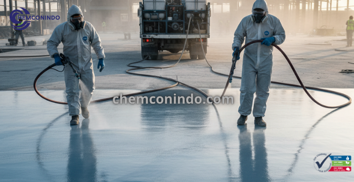 Segera hubungi kami di 08118922255 untuk konsultasi dan survei gratis bersama tim ahli kami. Chemconindo merupakan penyedia Jasa Aplikator Polyurea profesional yang berpengalaman dalam menangani berbagai kebutuhan pelapisan waterproofing, anti korosi, dan perlindungan permukaan industri.