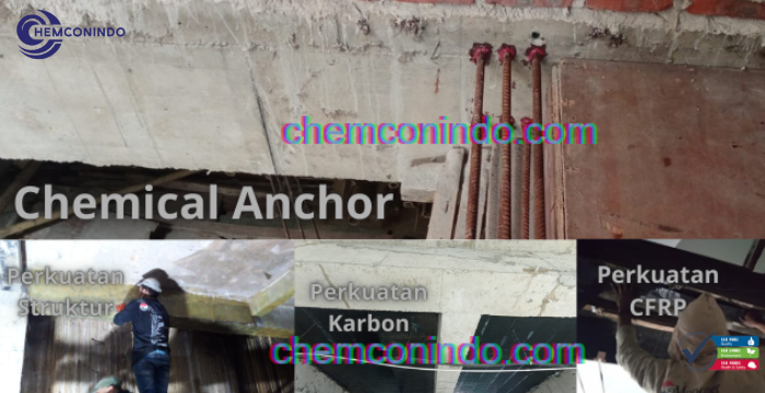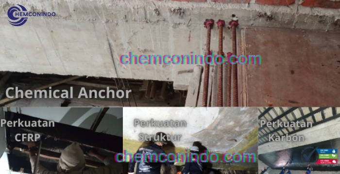 Mencari Jasa Perkuatan Beton yang profesional, terpercaya, dan berpengalaman? Chemconindo hadir memberikan solusi terbaik untuk meningkatkan kekuatan serta daya tahan struktur bangunan Anda. Dengan metode modern seperti chemical anchor dan berbagai teknik perkuatan struktur lainnya, kami siap menangani proyek skala kecil hingga besar dengan hasil yang maksimal.