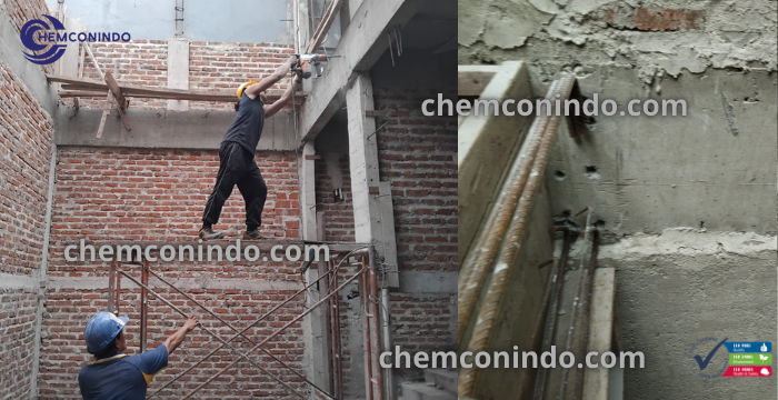 Kontraktor chemical anchor profesional Chemconindo juga melakukan survey lapangan sebelum menentukan teknik pemasangan yang sesuai dengan kondisi bangunan.